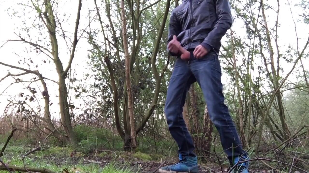 public cumshot after a lot of playing with my dick