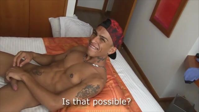 A Latin stallion strips down to show off his hot bod and impress the judges during a gay porn audition. He's sweating up a storm as he fucks himself with a dildo, and it's HOT!